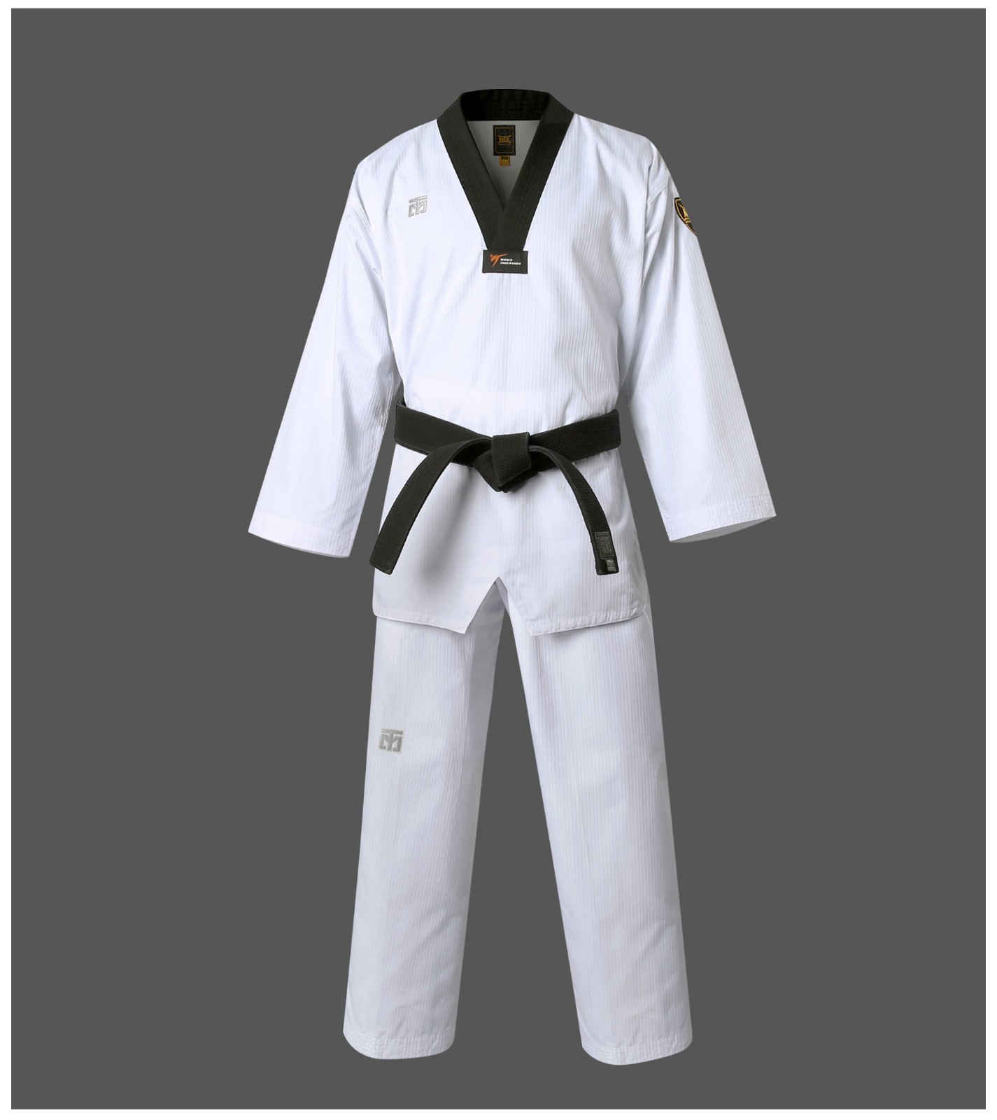 The uniform for contestants. Black belts must wear black collared uniforms. Tusah white collar wtf approved uniform size 170cm the uniform is made up of 80 polyester 20 cotton ribbed material the dobok is designed to feel light and flexible giving you zero restriction when training and competing while being simultaneously.